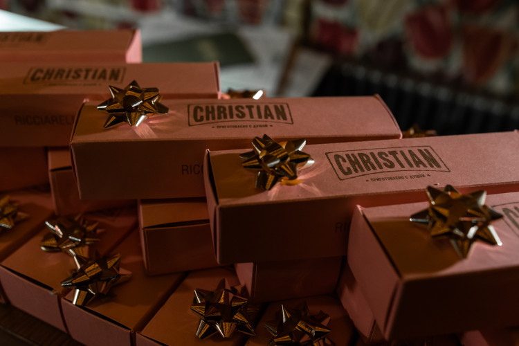 А на память об этом вечере всем парам подарили коробочку с традиционным итальянским миндальным печеньем Риччарелли, которое считается одной из фирменных сладостей родного города Кристиана Лоренцини - Сиены.
