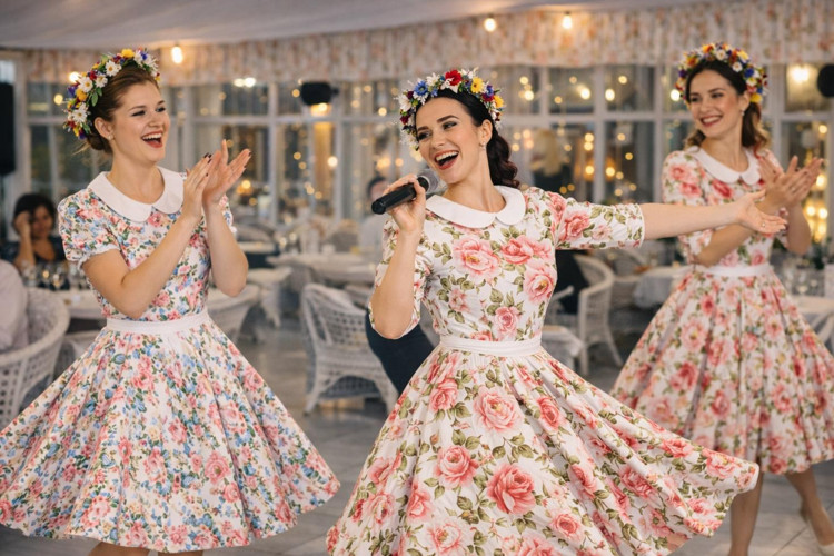 Талантливые артисты превращают вечер в праздник с по-настоящему русским размахом! Для вас прозвучат душевные песни в живом исполнении – романсы, советские песни и русский музыкальный фольклор, исполнят народные танцы.