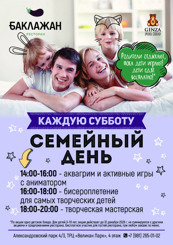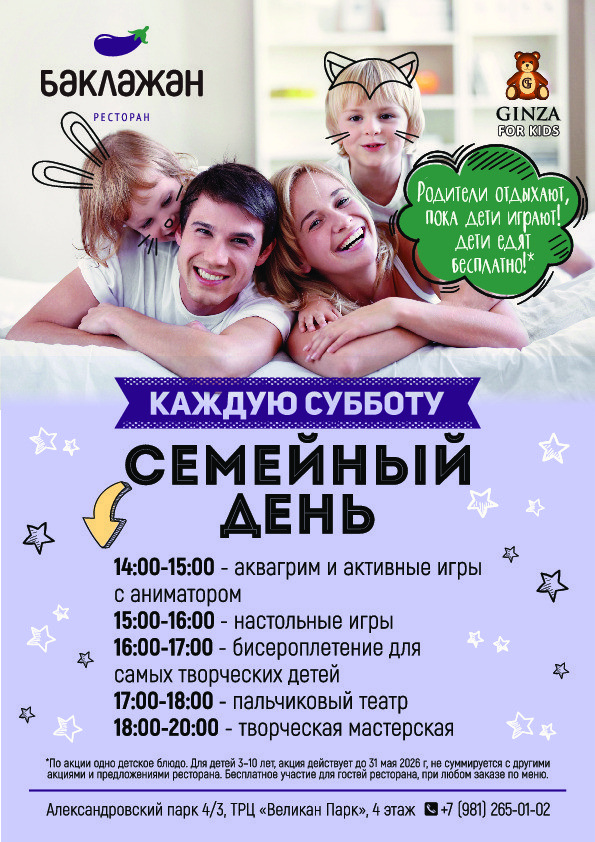 Для самых маленьких гостей создана огромная детская комната с сухим бассейном, который надолго займет их. А если детской комнаты окажется мало, то всегда можно посетить кулинарные мастер-классы, где детей научат готовить простые и вкусные блюда грузинской кухни. Пока самые важные гости заняты, родители могут спокойно поужинать в уютных, уединенных кабинках или понаблюдать за спортивной трансляцией на экране с диагональю 3х2 метра!