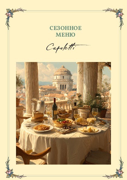 Многие петербургские итальянцы по праву считают этот ресторан своим. Дизайнерам интерьера удалось воплотить в Capuletti образ старинного итальянского заведения. Арт-команда создает непринужденную атмосферу, где каждый посетитель чувствует себя желанным гостем и другом. Здесь поют итальянские арии именинникам, играют в Uno и устраивают пиццайоло-шоу.