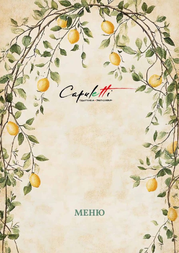 Отличительная особенность Capuletti — фирменная аппетитная пицца, приготовленная особым способом. Кроме того, гости заведения могут порадовать себя домашней выпечкой оригинальной рецептуры — в траттории действует настоящая итальянская кондитерская. Фокачча, кальцоне с разнообразными начинками, чиабатта, морбидо — это и многое другое можно попробовать в Capuletti или взять с собой.