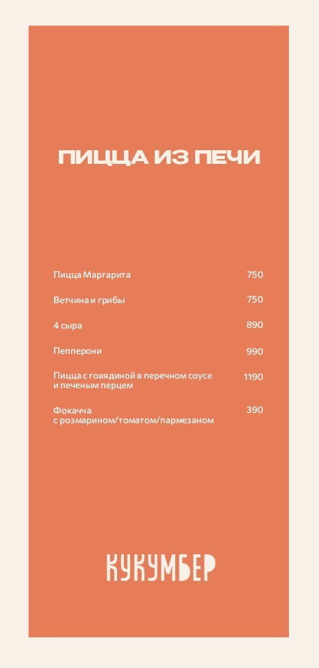 Ключевое слово многофункциональность: «Кукумбер» уместен для вечерних встреч под просмотр футбола, для красивых девичьих посиделок и для быстрого обеда во время удачного шопинга. Меню и целого мира мало: сибирские пельмени и поке, стеклянная лапша с цыпленком и румяные бургеры, премиальный камчатский краб и стейк рибай.