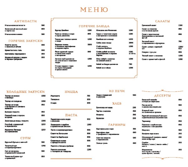 Для посещения «Легенды» найдется множество поводов уже в меню. Описывая его, невозможно выбрать единую кухню. Сложносоставное меню будет включать в себя все направления, которые так любит русский гость: восточная, итальянская, японская, паназиатская, грузинская, кавказская, блюда с мангала, шикарные десерты и завтраки.