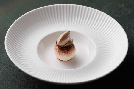 Первое блюдо сета – уже яркий пример итамеши или гастрономического стиля, объединяющего итальянские рецепты и японские ингредиенты. Это дуэт морского гребешка и ежа, в которых сочетаются кислые, соленые и сладкие вкусы. Джузеппе взял за основу рецепт типичной сицилийской закуски и добавил русско-японские продукты: гребешок подан с авторским понзу и копчёной солью, а еж с российской чёрной икрой и соусом из маракуйи. Вторая подача – равиолли alla carbonara, где соуса Карбонара раскрывается в нескольких проявлениях: в качестве тающей начинки, запечатанной внутри пасты, а также в виде карбонарового мусса. Сам соус приготовлен из предварительно замаринованного желтка, что в корне меняет образ, но сохраняет знакомый вкус.