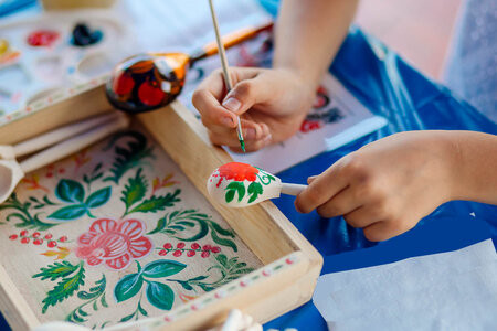Приглашаем всех ребят на интересный мастер-класс по росписи деревянных ложек хохломской росписью. Это декоративная роспись деревянной посуды выполняется красными, жёлтыми и золотистыми тонами по чёрному фону. Наша опытная мастерица расскажет про особенности и технологию росписи, поможет советом и ответит на все возникающие в творческом процессе вопросы.