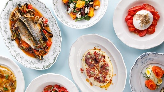 Начните с закусок: попробуйте томаты с крабом и страчателлой или карпаччо из гребешка с трюфелем. Не пропустите салат с хурмой, голубым сыром и миндалем, а также итальянский салат с осьминогом. Для любителей морепродуктов предлагаем кальмара лолиго с устричным соусом. В горячих блюдах вас ждут равиоли с рикоттой и камбала с сальсой из каперсов. А на десерт попробуйте легкий шоколад с мисо-карамелью — он отлично завершит ваш ужин.