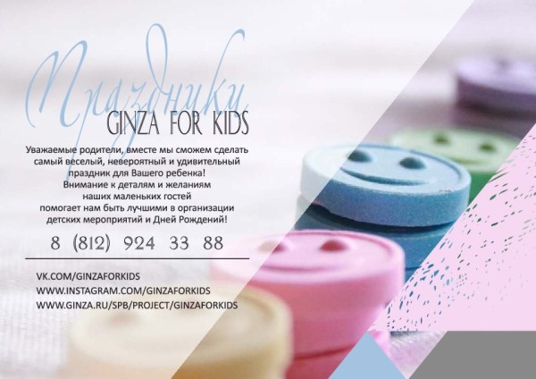 - При заказе детского дня рождения вместе с Ginza for Kids ставятся 3 печати. Сумма заказа не влияет на количество печатей;*